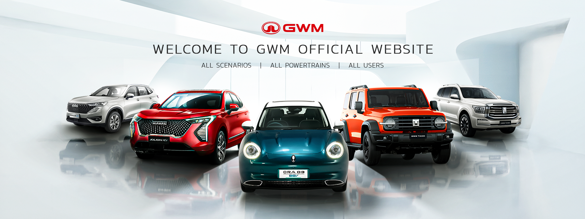 Misi GWM adalah menikmati setiap perjalanan — serta memberdayakan setiap semangat untuk bersinar. Baik untuk pengalaman berkendara di perkotaan bersama GWM Haval H6, GWM Haval Jolion, dan GWM Ora 03 yang baru diperkenalkan; maupun untuk kendaraan yang siap membawa Anda ke mana saja dengan pengalaman premium terbaik di setiap perjalanan — seperti GWM Tank 500 dan GWM Tank 300.